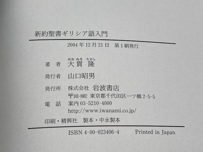 商品名:新約聖書ギリシア語入門 岩波書店 大貫 隆