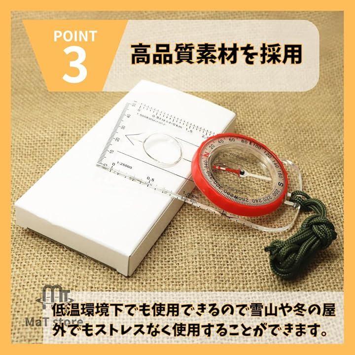 「低温環境下でもしっかり使える」方位磁石の使用可能温度は−35℃~+55℃。