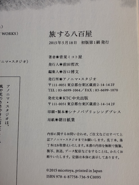 ■商品詳細■ 商品名・旅する八百屋 アノニマ・スタジオ 青果ミコト屋(鈴木鉄平、山代徹)/ ■商品状態■表紙にスレ、ヤケ、天地小口にスレ、ヤケ、キズ、本にスレ、ヤケ、があります。本を読むことに支障はございません。※注意事項※■毎商品チェック後出品しておりますが、中古品ということもあり、多少の書き込み等のチェック漏れがあった際はご容赦下さい。■付録等の付属品がある商品の場合、記載されていない物は『付属なし』とご理解下さい。■併売販売をしているため、在庫切れの場合はキャンセルとなります。予めご了承ください。