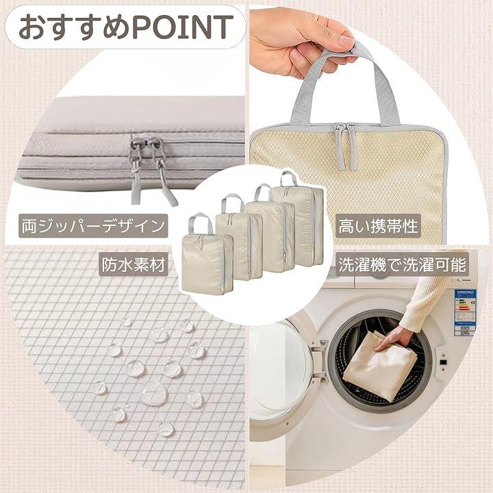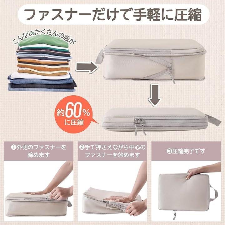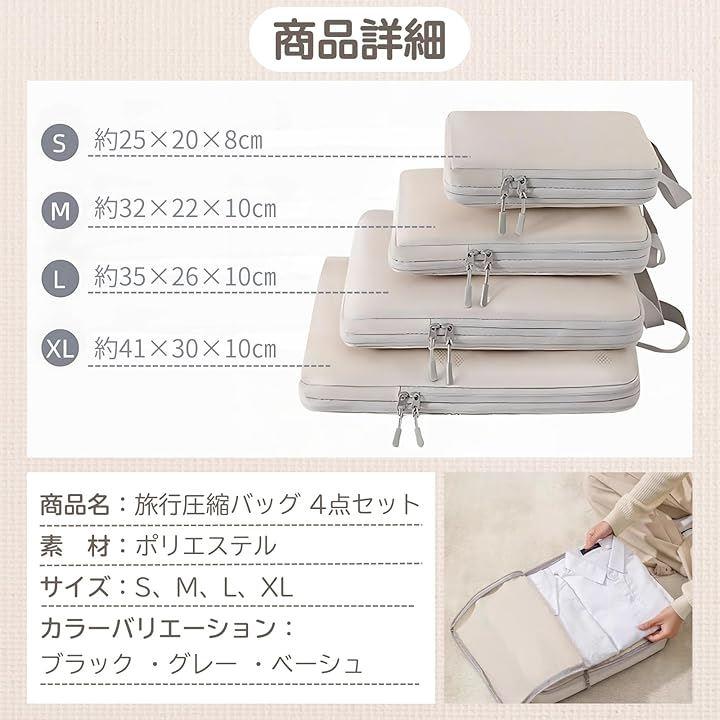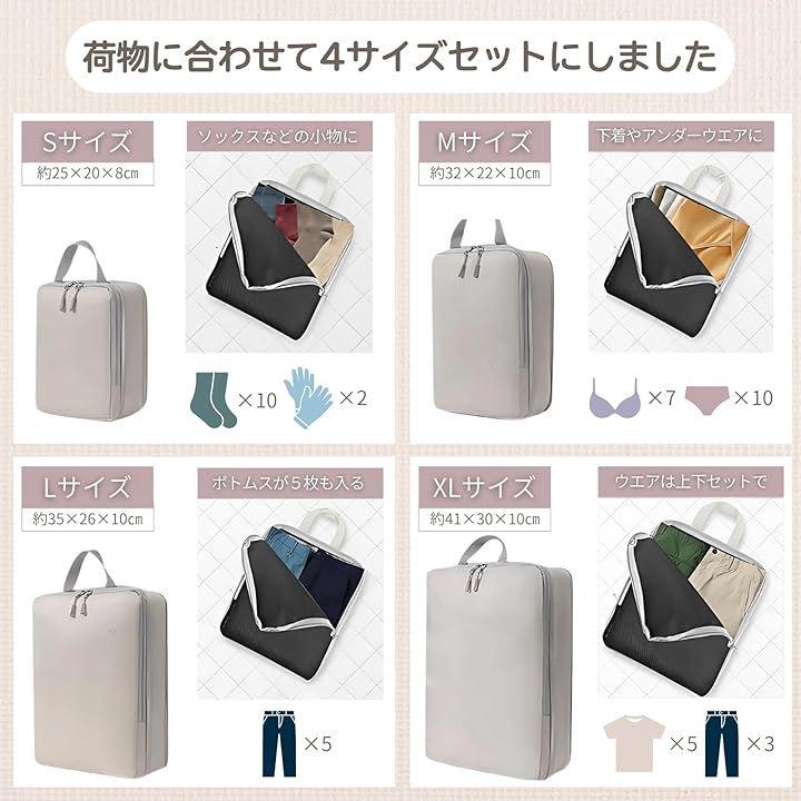 旅行や出張の荷造りをもっとスマートに。「ElevenHeart 旅行用圧縮袋 4点セット」は、かさばる衣類をファスナーを閉めるだけで簡単圧縮。
