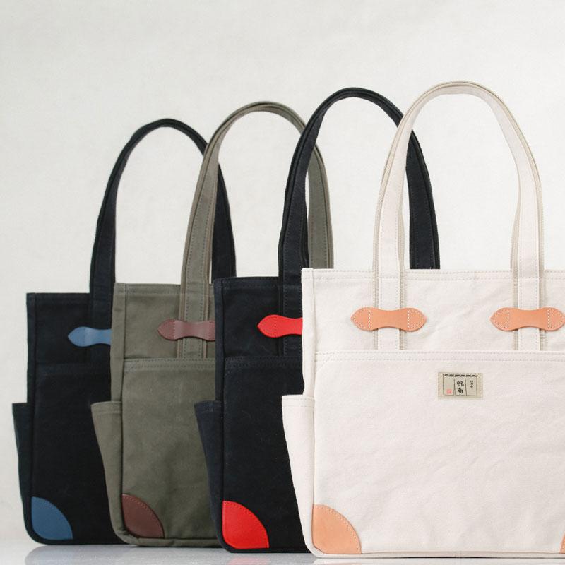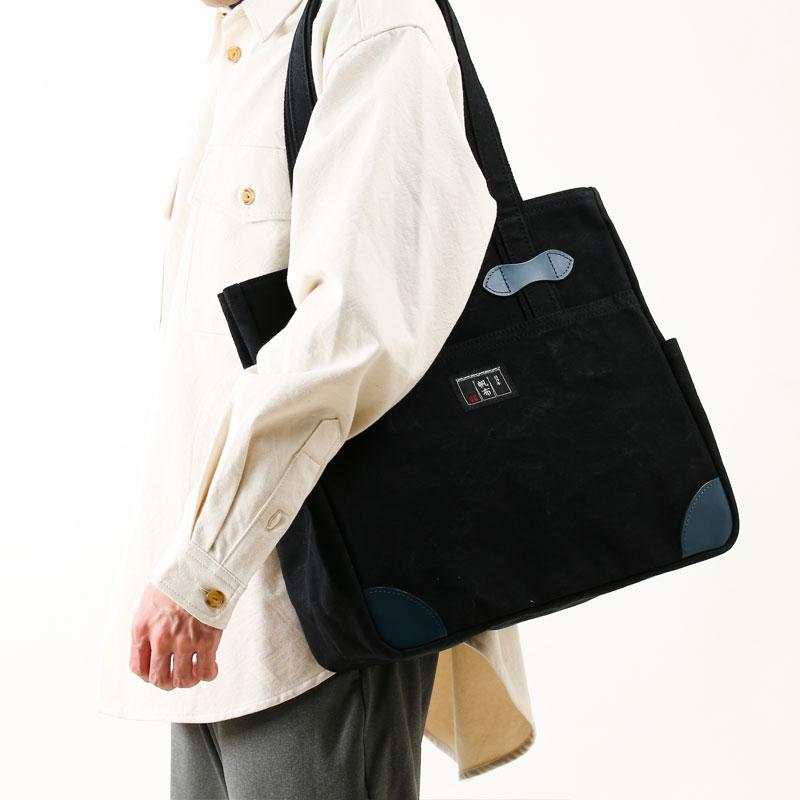 肩に優しい帆布生地の持ち手トートバッグです。厚みのある6号帆布なので丈夫かつ、角や持ち手の革の色がアクセントになっております。外側だけでなく、中を開いた時にも同じ革があるのがポイント!収納力が多いのが最大の魅力で、タブレットや小型のノートパソコンも収納可能です。