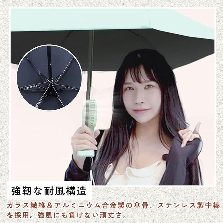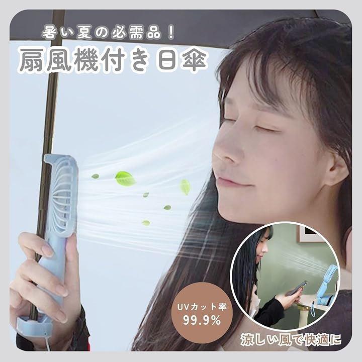「多機能」 この日傘には内蔵された小型扇風機が搭載されており、ボタンを押すだけで涼しい風が吹き出します。