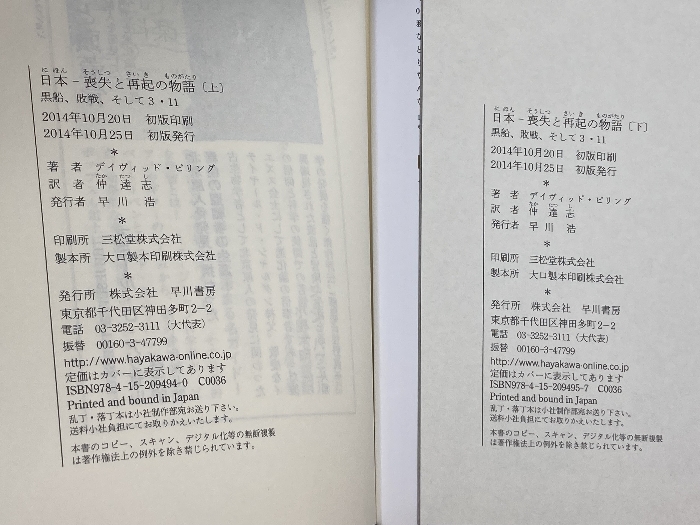 商品名:日本―喪失と再起の物語 黒船、敗戦、そして3・11 上下巻揃 デイヴィッド・ピリング 早川書房