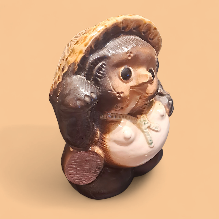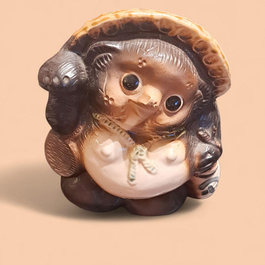 日本の狸の置物です。 陶器。かわいい縁起物です。