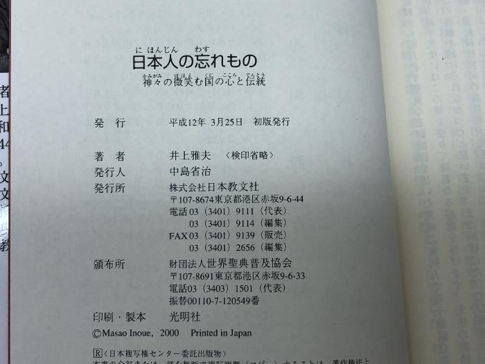 商品名:日本人の忘れもの: 神々の微笑む国の心と伝統 日本教文社 井上 雅夫