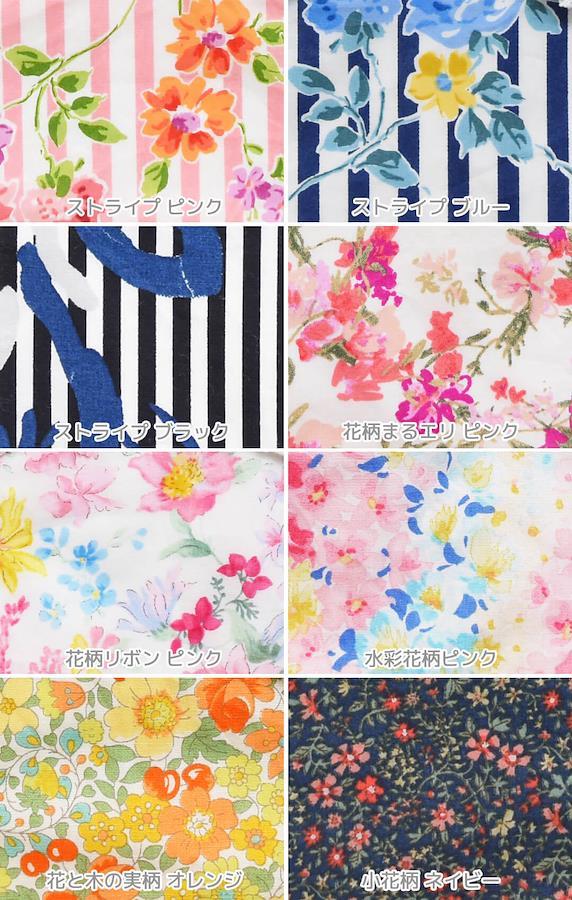 カラー(柄) | ストライプピンク / ストライプブルー / ストライプブラック / 花柄まるエリピンク / 花柄リボンピンク / 水彩花柄ピンク / 花と木の実柄オレンジ / 小花柄ネイビー