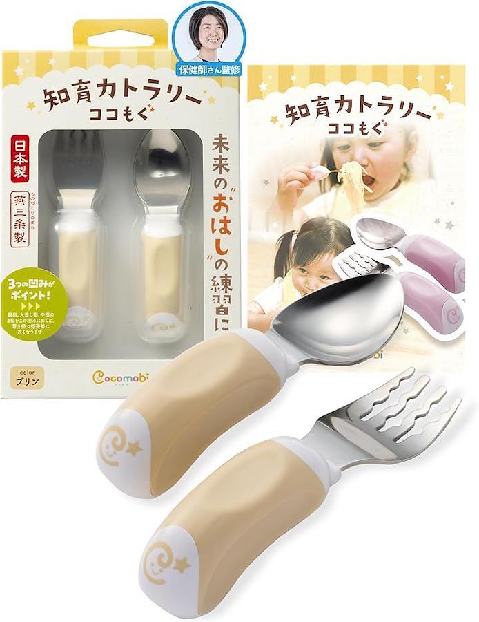 商品名「ココもぐ」はベビースプーンとフォークの2点セットとなっている「知育カトラリー」です。