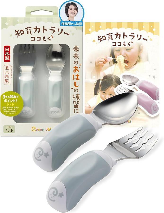 商品名「ココもぐ」はベビースプーンとフォークの2点セットとなっている「知育カトラリー」です。