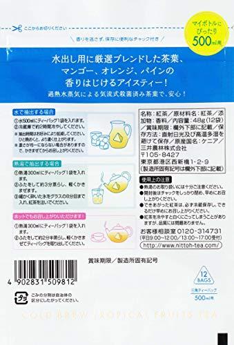 夏に人気のトロピカルフルーツが復活。マンゴー、オレンジ、パイナップルの南国フルーツの香りはじけるおいしさ。水出し用に厳選した良質な茶葉を使用。過熱水蒸気による気流式殺菌を施した安心設計。マイボトルにも便利な500ml抽出、12袋入り。冷水に2時間入れるだけで簡単に抽出可能。香りの逃げないアルミスタンドパウチ容器。