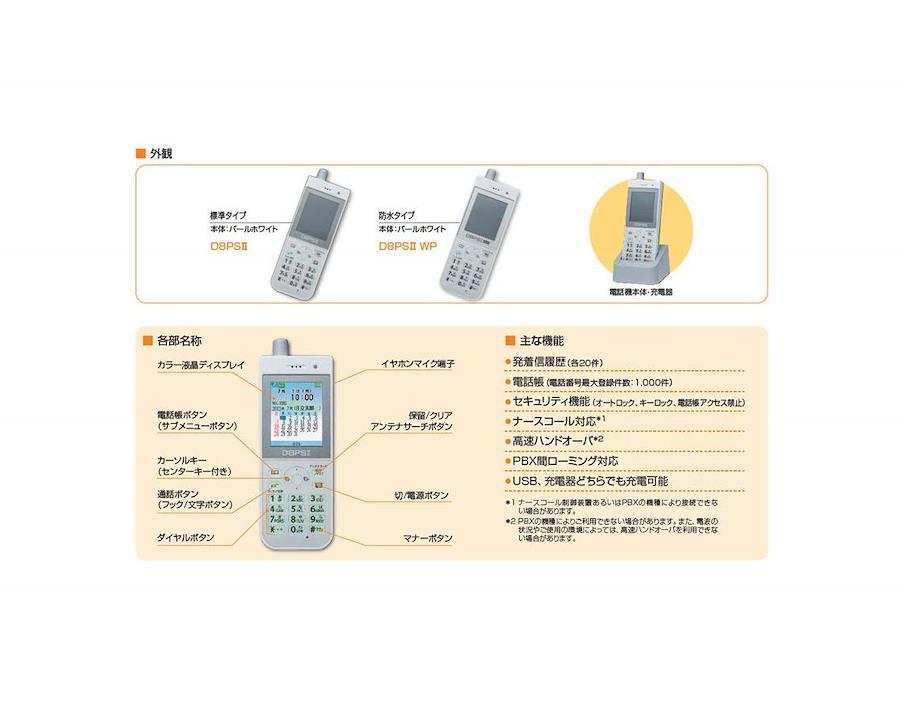 日立コードレス電話機 HI-D8PSⅡ パールホワイトです。利用には、PBX(構内交換機)のデータ設定が必要となります。データ設定は専門の電話工事業者等に依頼が必要です。