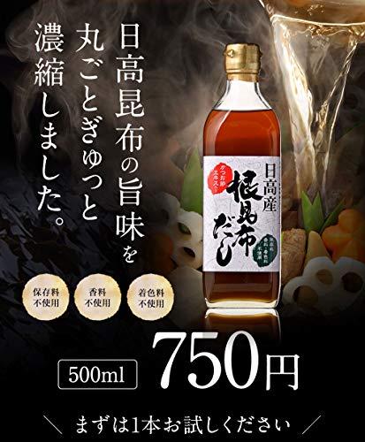 日高産根昆布を使用した、液体タイプの出汁です。簡単!手間いらず、時短料理でおいしくなると話題の出汁。 保存料、香料、着色料不使用。