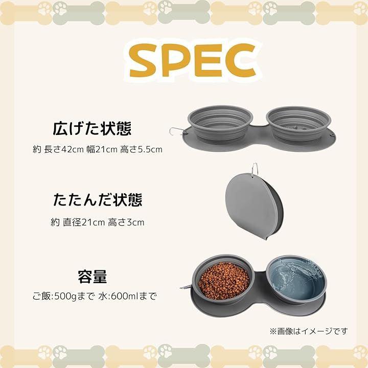 2つの機能が1つになった食器:折りたたみ式フードボウル&水飲み皿が一体化し、ドライフード・ウェットフードどちらも対応。