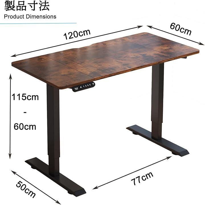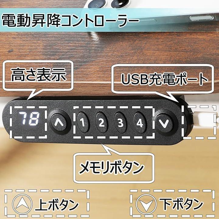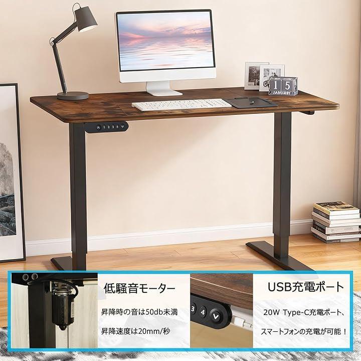 昇降式デスク 電動式机 幅120 パソコンデスク スタンディングデスク つくえ 高さ調節メモリー機能付き 高さ調節可能 高さ69~115CM USBポート付き