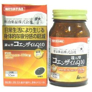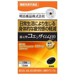 ■商品概要メーカー:明治薬品商品名:【軽】健康きらり 還元型コエンザイムQ10(30粒)区分:食品内容量:30粒商品概要:【機能性表示食品】日常生活により生じる身体的な疲労感の軽減JANコード:4954007015337商品コード:078338839■商品の特徴本品には還元型コエンザイムQ10が1粒450mgあたり100mg含まれます。還元型コエンザイムQ10は細胞でのエネルギー産出を助け、日常の生活で生じる一過性の身体的疲労感を軽減する機能があることが報告されています。■機能性関与成分【表示しようとする機能性】疲労感を軽減本品には還元型コエンザイムQ10が含まれます。還元型コエンザイムQ10は細胞でのエネルギー産生を助け、日常の生活で生じる一過性の身体的疲労感を軽減する機能があることが報告されています。【想定する主な対象者】成人男女【機能性関与成分名】還元型コエンザイムQ10【1日あたりの含有量】100mg【摂取目安量】■原材料/成分/素材/材質食用オリーブ油、還元型コエンザイムQ10、イカスミ、デキストリン / ゼラチン、グリセリン、レシチン(大豆由来)、ミツロウ、グリセリン脂肪酸エステル■賞味期限/使用期限(製造から)3年■使用方法/召し上がり方水などでお召し上がりください。■使用上の注意本品は、多量摂取により疾病が治癒したり、より健康が増進するものではありません。1日の摂取目安量をお守りください。アレルギーのある方は原材料を確認してください。子供の手の届かない所に保管してください。開栓後は栓をしっかり閉めて早めにお召し上がりください。■メーカー希望小売価格(税込)3866円■発売元/製造元/輸入元明治薬品■お問い合わせ先本製品についてのお問い合わせは、お買い求めのお店又は下記にお願い致します。明治薬品株式会社お客様相談室0120-53-34519:00~17:00(土、日、祝日、特定休日を除く)副作用被害救済制度の問い合せ先(独)医薬品医療機器総合機構http://www.pmda.go.jp/kenkouhigai.html電話 0120-149-931(フリーダイヤル)