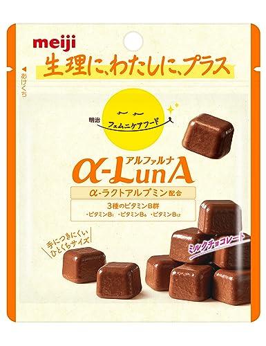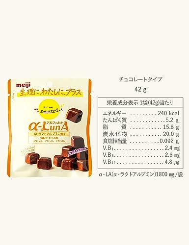 【明治フェムニケアフード α-LunA(アルファルナ)ミルクチョコレート】カラダとココロのゆらぎに寄り添う、新しいケアのかたち。手につきにくいコーティングで片手でつまめるチョコタイプは、仕事や勉強中のおやつにぴったり。女性のカラダを応援する「フェムニケアフード」。【明治 フェムニケアフード】100年にわたり食の「おいしさ」「楽しさ」「健康価値」を追求してきた明治が、変化する女性のライフスタイルに着目。女性のカラダを「手軽においしく」応援。【ひとくちサイズのチョコレート】生乳に含まれるたんぱく質の一種である、α‐LA(α‐ラクトアルブミン)1800㎎に、3種のビタミンB群配合。忙しい日でも、手軽に新習慣。【内容量】42g