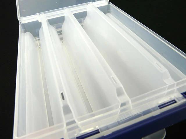 エギのシンカー部・ルアーのトリプルフックが溝に収まるので、無駄なスペースを解消。水抜きダクト付きで丸洗いも可能。