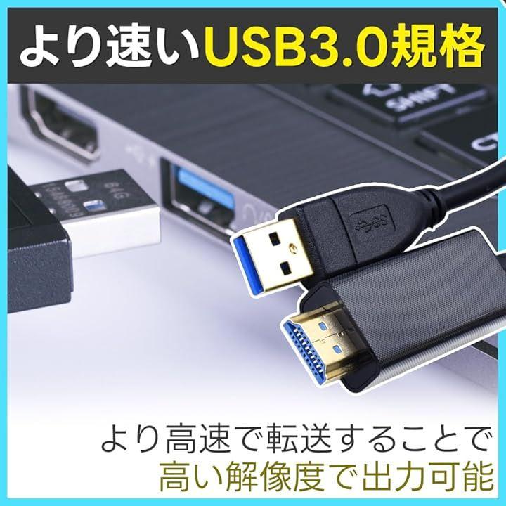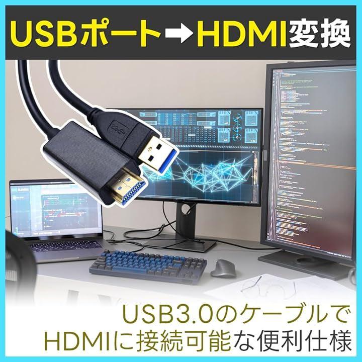 「セット内容」USB3.0 HDMI変換ケーブルx1点 「サイズ(約)」全長:1.8m 「USB端子規格」USB3.0 Type-A 「カラー」ブラック
