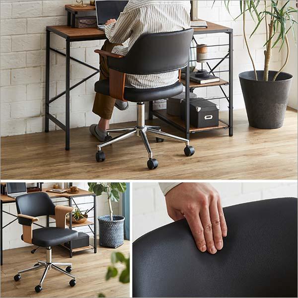 【素材】(チェア)フレーム:突板化粧曲合板(ラッカー塗装)張地:合成皮革(PU)内部:積層合板、ウレタンフォーム脚部:スチール(クロームメッキ)、ナイロンキャスター(テーブル)MDF、スチール【商品サイズ】チェア:W58.5×D65.5×H76.5-86.5 (SH44-54)cmテーブル:W110cm×D60cm×H83.5cm【商品重量】チェア:8kgテーブル:10kg【梱包サイズ】チェア:W55×D61×H44cmテーブル:112x71.5x6.5cm【梱包重量】チェア:10?テーブル:17?【生産国】中国【カラー】SH-BR,SH-NA,WA-BR,WA-NA【その他】組み立て時間45分>>曲線が美しいデスクチェア(単品)はこちら >>ヴィンテージ風L字パソコンデスク(単品)はこちら
