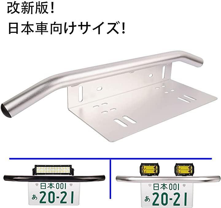 最新版 日本車専用 汎用 前照灯 作業灯 ワークライト ライトバー フォグランプ 等 取り付けため用 ライセンスプレート スタンド ステー ナンバープレートブラケット パイプバンパー 1個入り シルバー