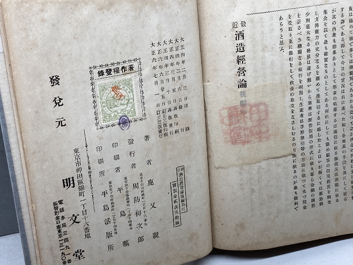 商品名:最近酒造経営論 前後編 2冊揃 鹿又親 明文堂 大正6年