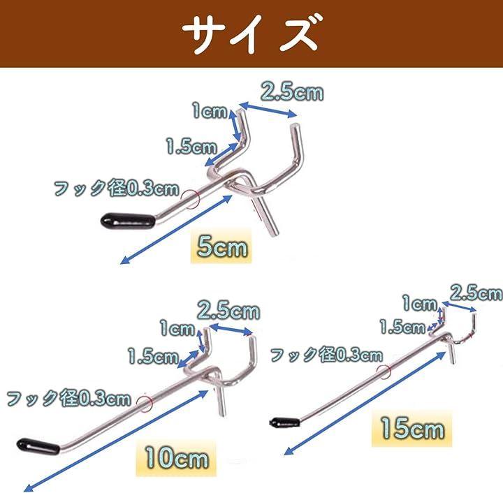 3種類の約5cm、約10cm、約15cmの長さ異なるフックが揃ったセット品となっています。