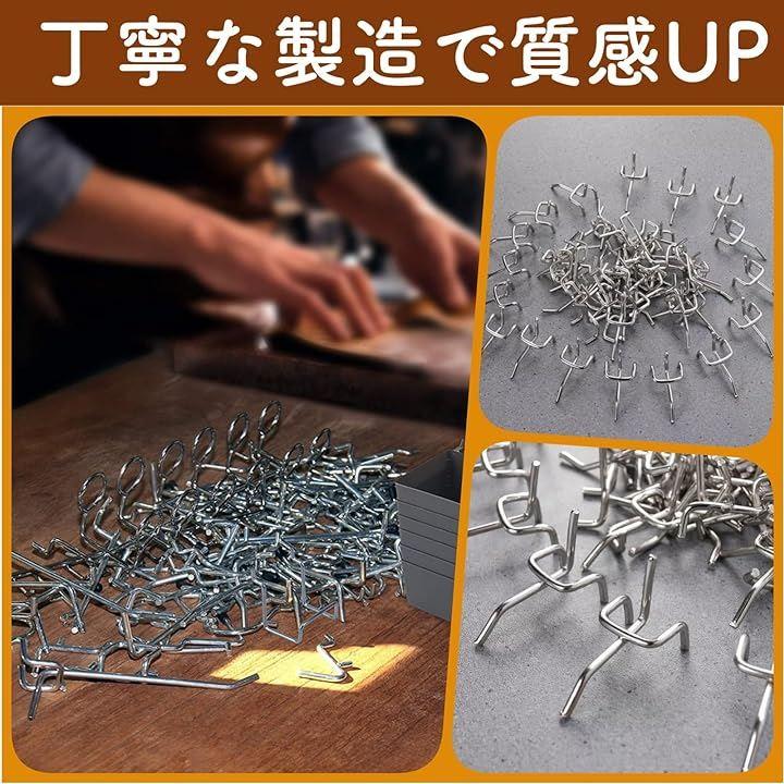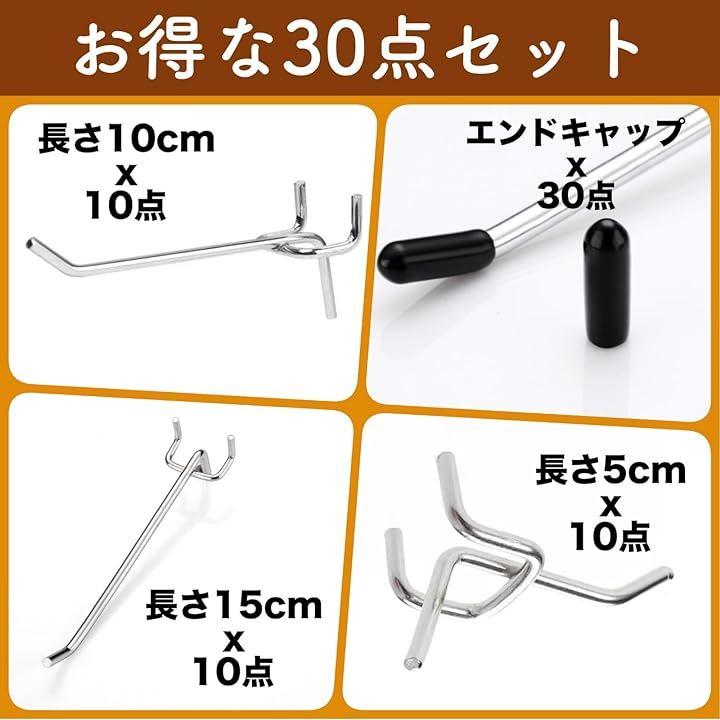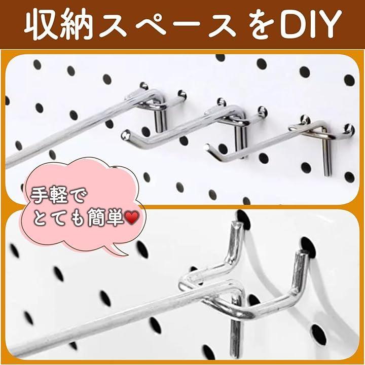 有孔ボードの穴に差し込んで収納スペースを作れる有孔ボード用フックのセットでございます。