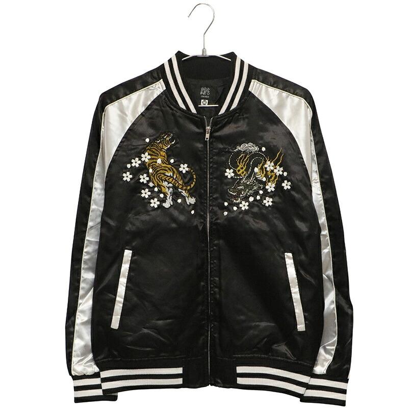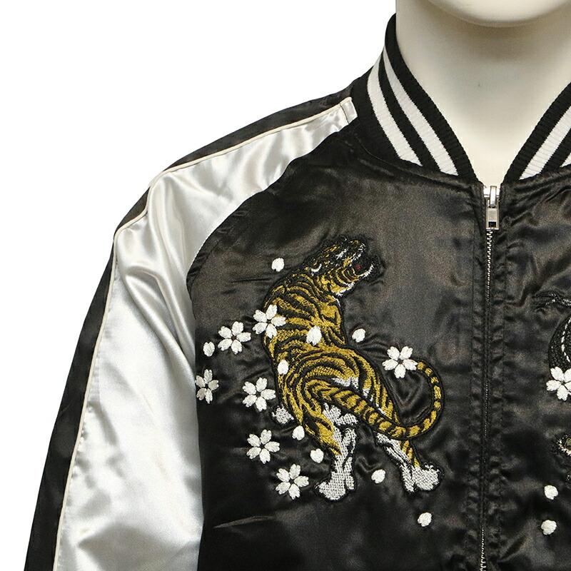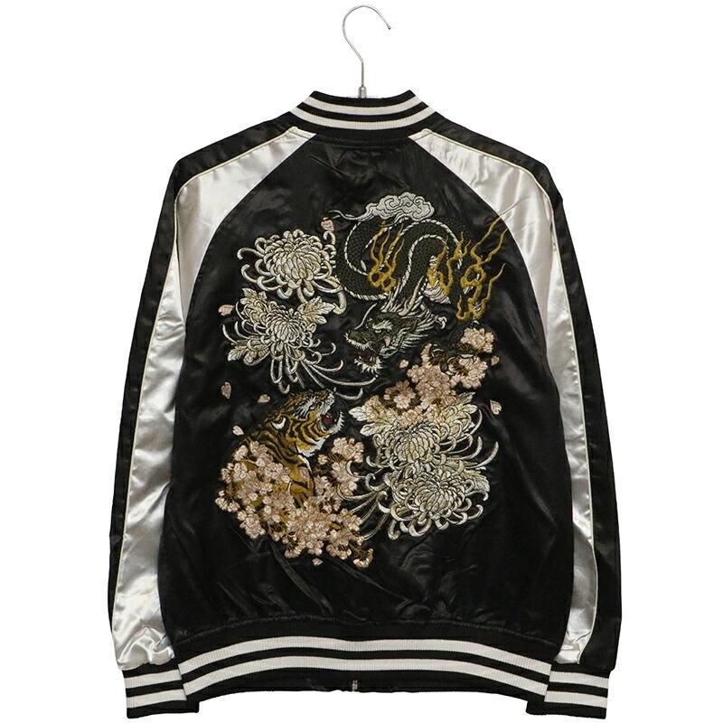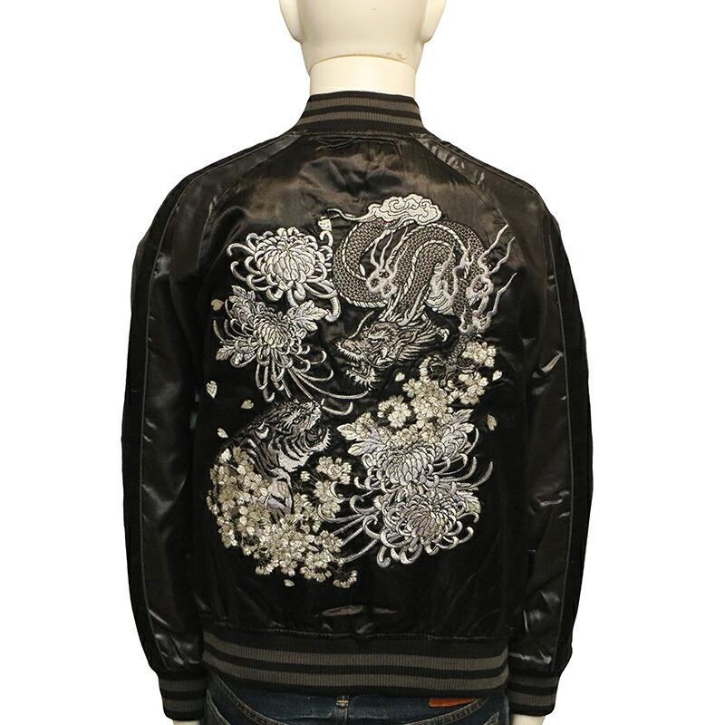 朧 おぼろ 龍虎 柄 刺繍 和柄 スカジャン ( 9001811 )和柄 スカジャン ポリエステルサテン アウター 軽量アウター 龍虎 柄 ヒプノシスマイク ヒプマイ 定番柄 総刺繍 3色展開 BLACK×SILVER XL