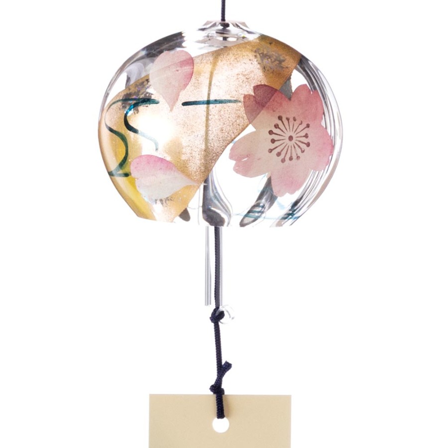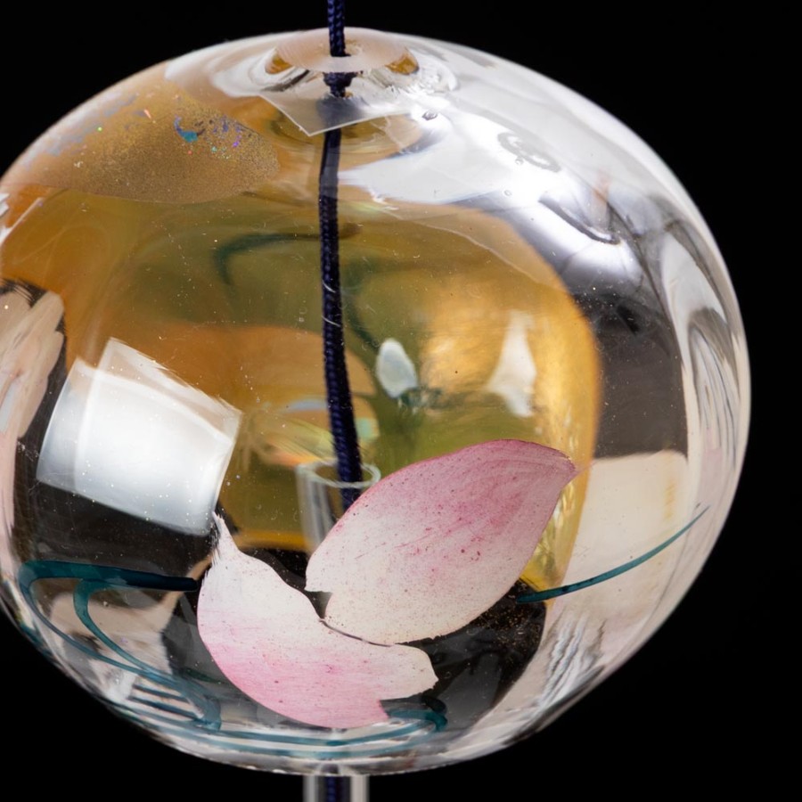 クリスタルガラスを使用した、ぬくもりのある透明感が特徴の風鈴に、その透明感を生かした柄を内側にさりげなく描いた、立体感のある柄のガラス風鈴。