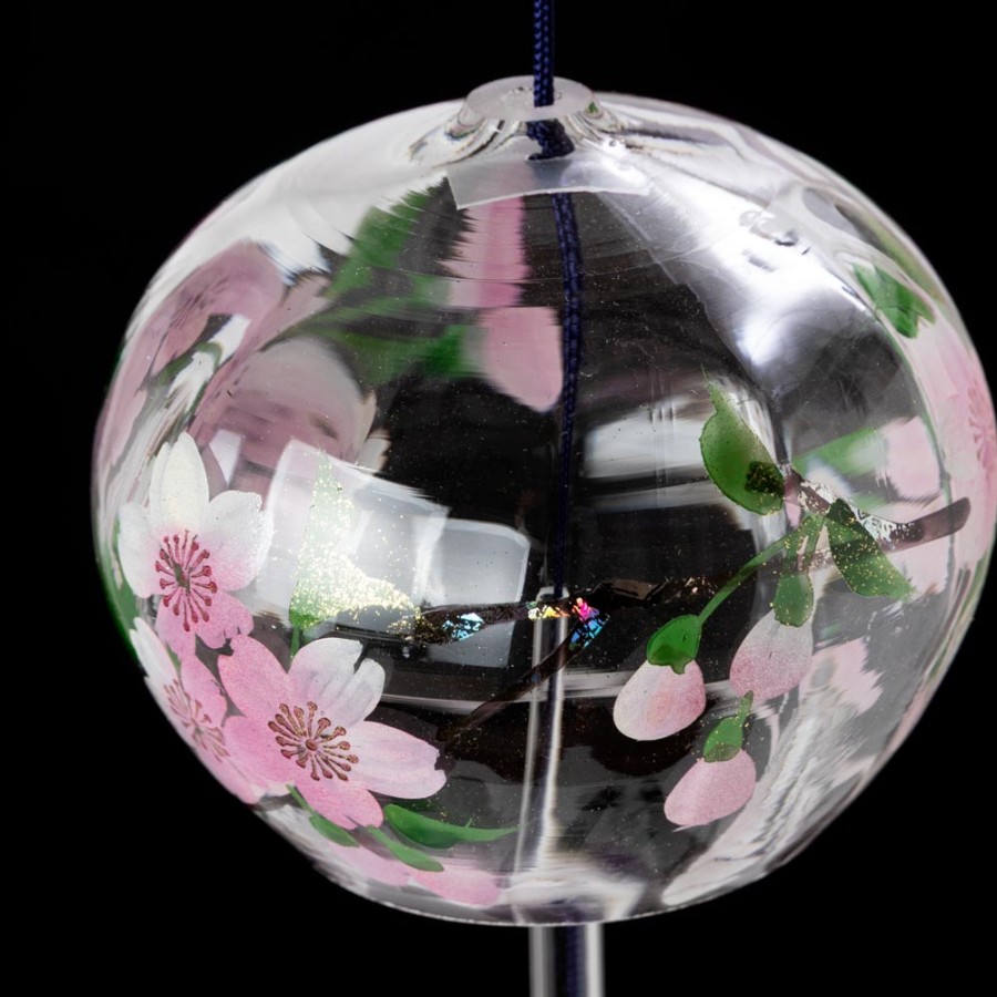 クリスタルガラスを使用した、ぬくもりのある透明感が特徴の風鈴に、その透明感を生かした柄を内側にさりげなく描いた、立体感のある柄のガラス風鈴。