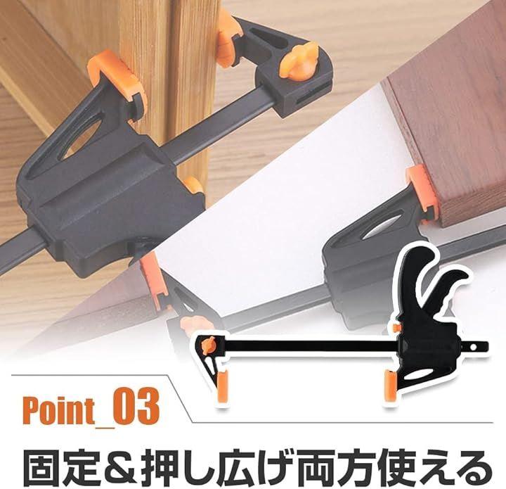片手で扱えるクイックバークランプは、バーの顎部分のネジを外し反対側に取り付けると木材の固定だけでなく押し広げ作業にも使用可能です。