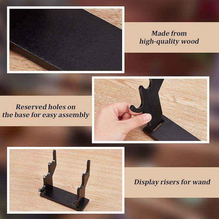 3層デザイン:木製のワンドディスプレイスタンドは3段設計で、同時に3本の魔法の杖を保持でき、スペースを節約できます。