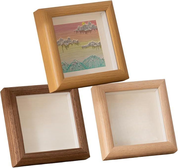 「商品スペック」サイズ:約10.7x10.7x3cm、素材:合板木材・アクリルガラス、カラー:ウッド/ナチュラル/ブラウン、セット:2個セット/3個セット