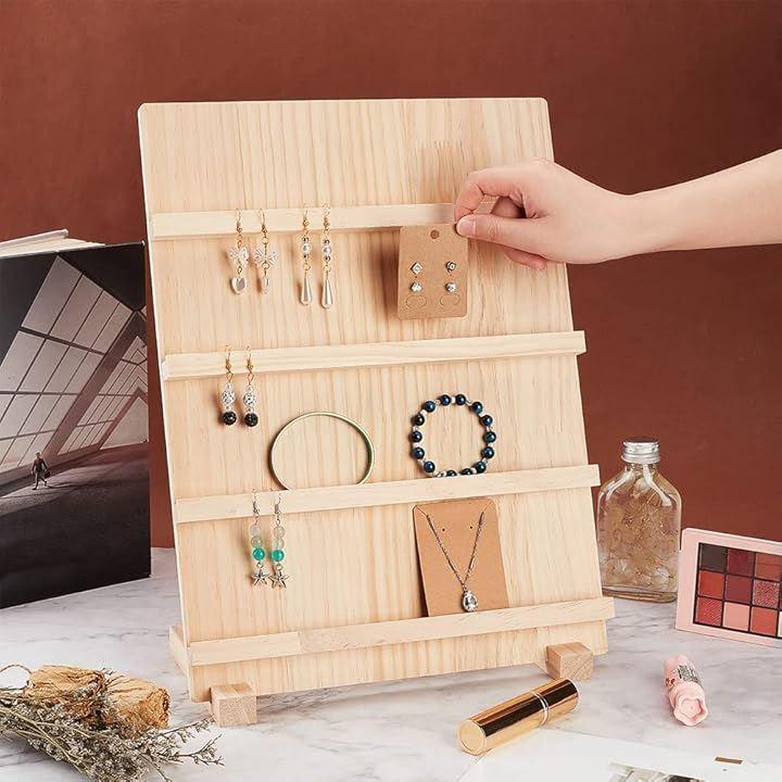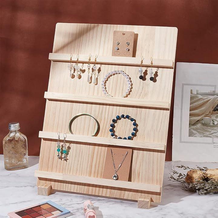 ジュエリーホルダー: イヤリング・ディスプレイ・ラックは、4段の凹みにイヤリング・ディスプレイ・カードを差し込むことで、ジュエリーを視覚的にディスプレイでき、お客様がジュエリーを選びやすく、取り出しやすくなるように設計されています。