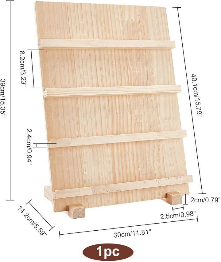 組み立ても簡単:4段の木製ディスプレイは、板をベースの溝に差し込むだけで、数分で簡単に組み立てることができます。