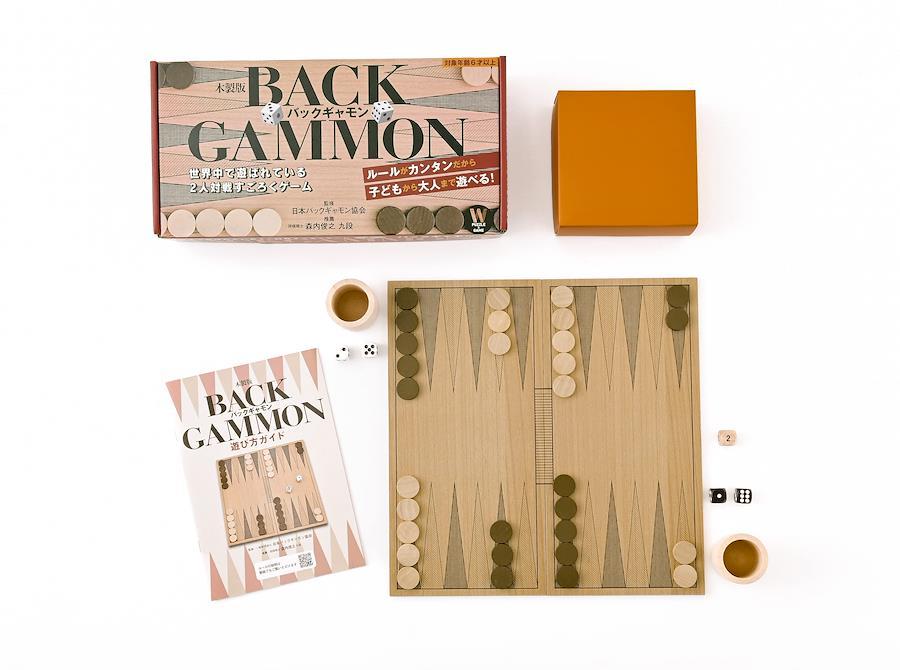 運と選択。スリルと逆転。世界中で3億人以上がプレイする2人対戦頭脳ゲーム!バックギャモンとは、サイコロとコマだけで遊ぶシンプルなすごろくゲームですが、先を読む力や戦略性、駆け引き力が必要な奥深いゲームです。本商品では初めての方でも楽しめるように、全16ページの遊び方ガイドを収録。コマの動かし方から分かる丁寧なルール解説やワンポイントアドバイスのほか、シチュエーション別でコマの動かし方が学べる問題を掲載。子どもから大人まで世代を問わず楽しめます。【監修:日本バックギャモン協会】1993年発足。2021年一般財団法人化。初心者指導会や「バックギャモンフェスティバル」などでのタイトル戦を主催し、バックギャモンの普及および振興のための活動を行っている。代表理事の望月正行氏は2009年と2021年の世界バックギャモン選手権で2回優勝している。【推薦:森内俊之 九段】1970年生まれ、神奈川県出身。将棋棋士。十八世名人資格者。2014年世界バックギャモン選手権で4位入賞、2019年度のバックギャモン王位戦で王位獲得など、バックギャモンプレイヤーとしても活躍している。【対象年齢】6才以上[セット内容]木製折りたたみボード 1枚(裏面:滑り止め用不織布貼り/サイズ:296×292×6mm)・木製コマ32個(無垢15個/茶15個/予備各1個/サイズ:直径21mm、厚さ5mm)・木製ダイスカップ2個・アクリル製サイコロ4個(白2個/黒2個)・木製ダブリングキューブ1個・紙製コマ箱1組・遊び方ガイド1冊(16ページ) (C)JapanBackgammonSociety, GENTOSHA 2021