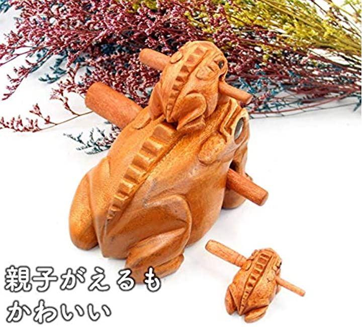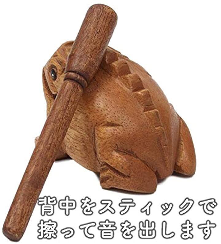 「木製カエルミニギロドラムパーカッション打楽器かえる鳴き声縁起物タイアジアモーコック」