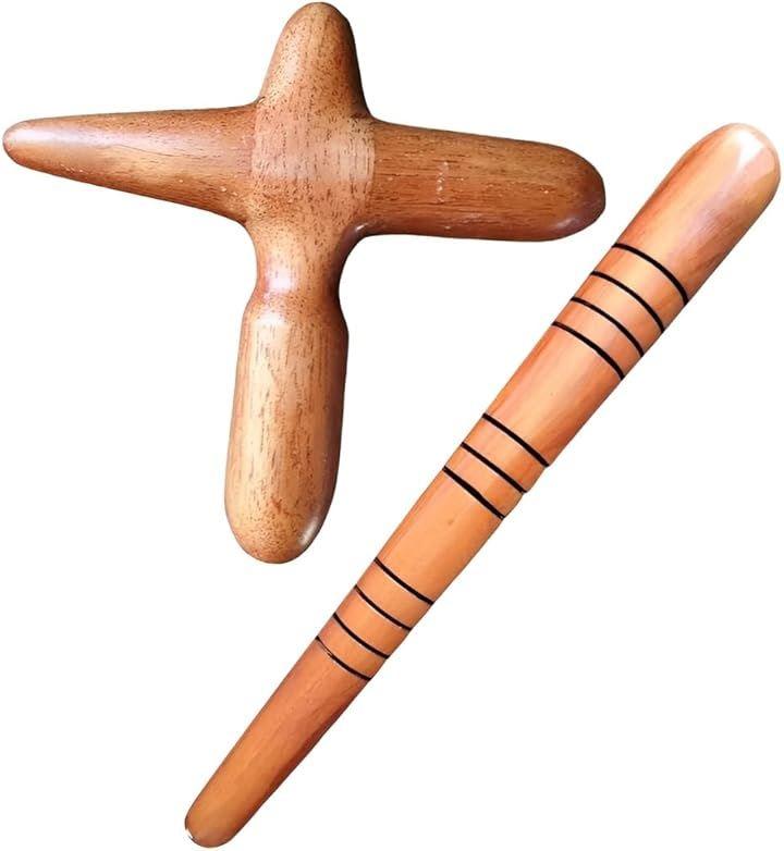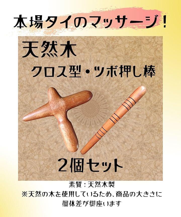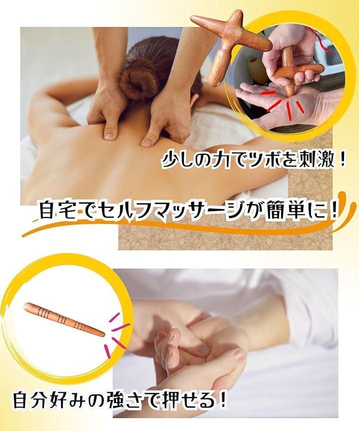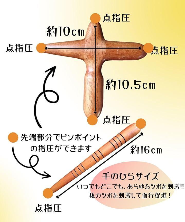 ナチュラルな木のぬくもりを感じられる「クロス型」と「スティック型」のツボ押しを1セットにしました。