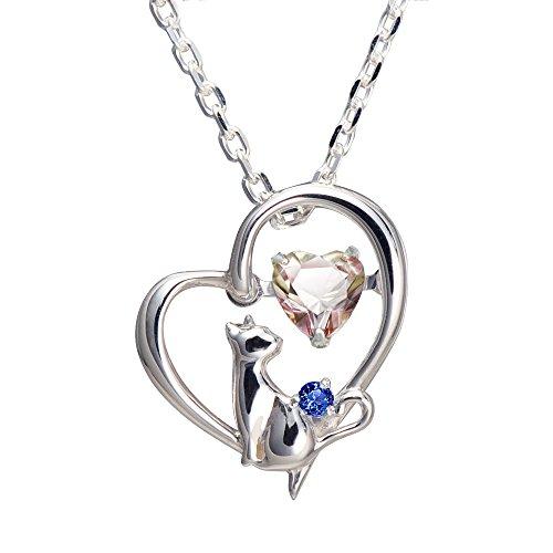 お好みの誕生石が選べる、今大人気のレディース用、ネコモチーフネックレス。キュートなネコとキュートなハートの相性はバツグン!立体的な構造になっているため、正面からも斜めから見ても胸元を際立立てます。しっぽの部分と誕生石で形成される隠れハートも特徴!