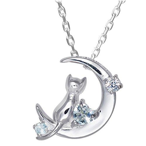お好みの誕生石が選べる、今大人気のレディース用、ネコモチーフネックレス。キュートなネコと神秘的な三日月の相性はバツグン!正面からも斜めから見ても胸元を際立立てます。シリーズ累計売上本数も20,000本を超えた人気のレディースネックレス。ランキングにも多数入賞!自分へのご褒美にも大切な方へのプレゼントにも大変喜ばれる商品です。本体 縦×横×厚み(mm) :約12.9×約10×約3.1素材:シルバー/ホワイトサファイア(2.0mmx1)/アクアマリン ハートカット(3mm)/誕生石(1.5mm)重量(g):約2.2 チェーン :シルバーカットアズキチェーン 約40cm