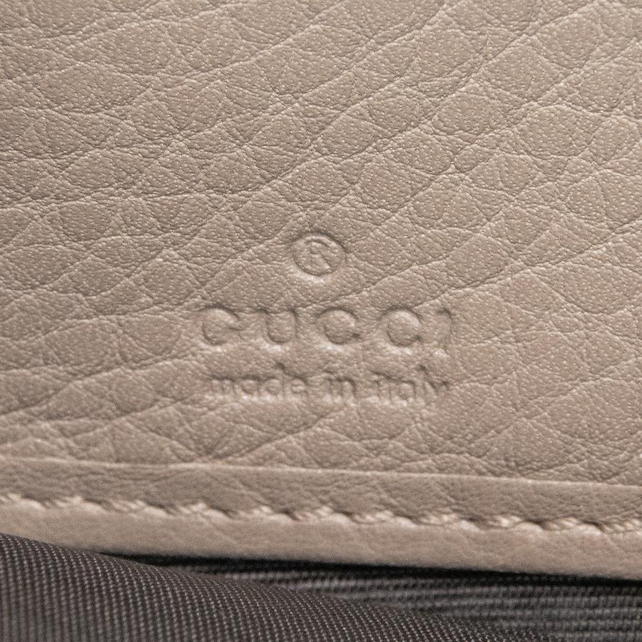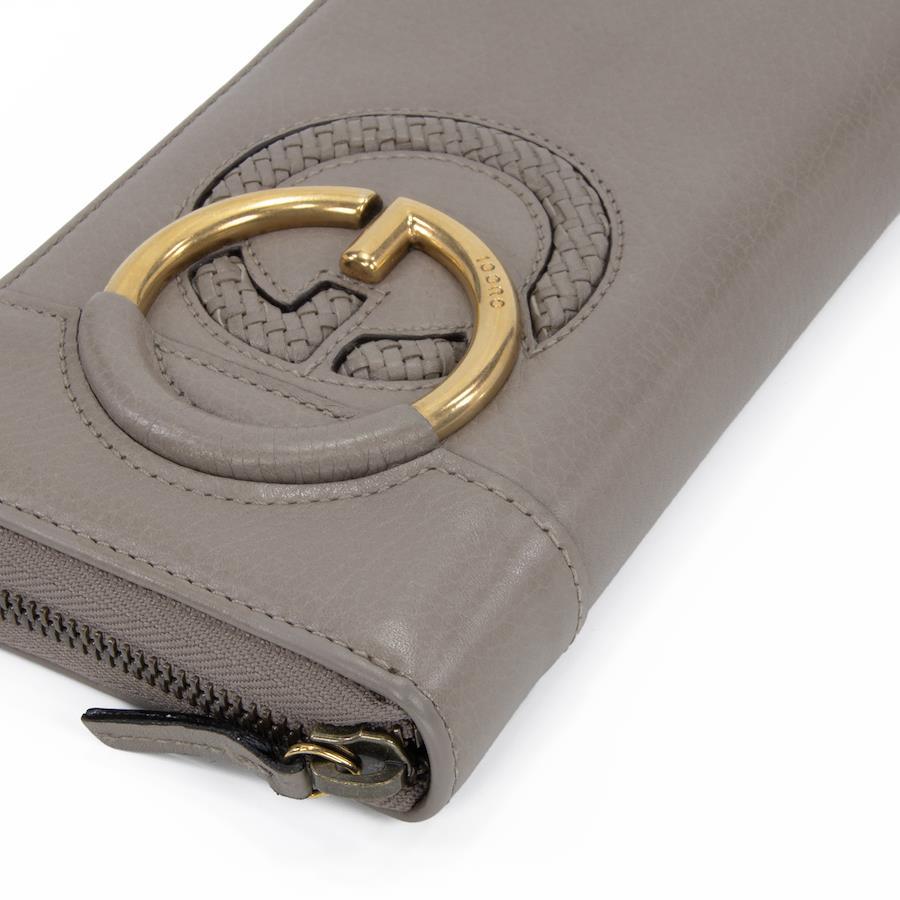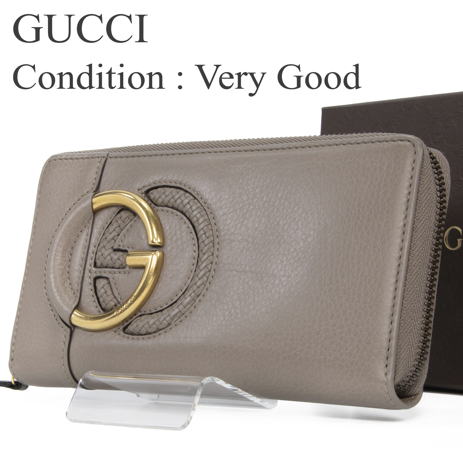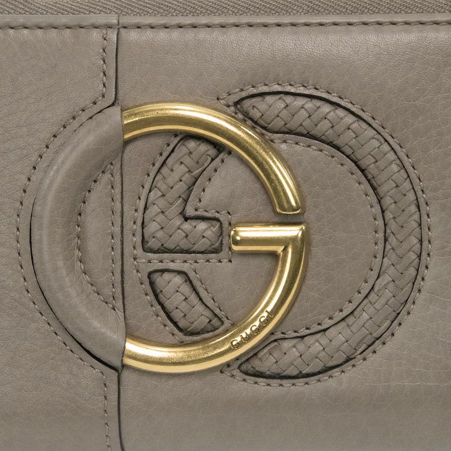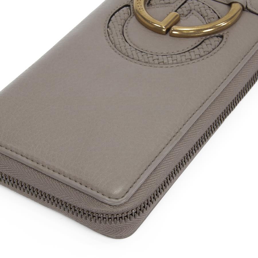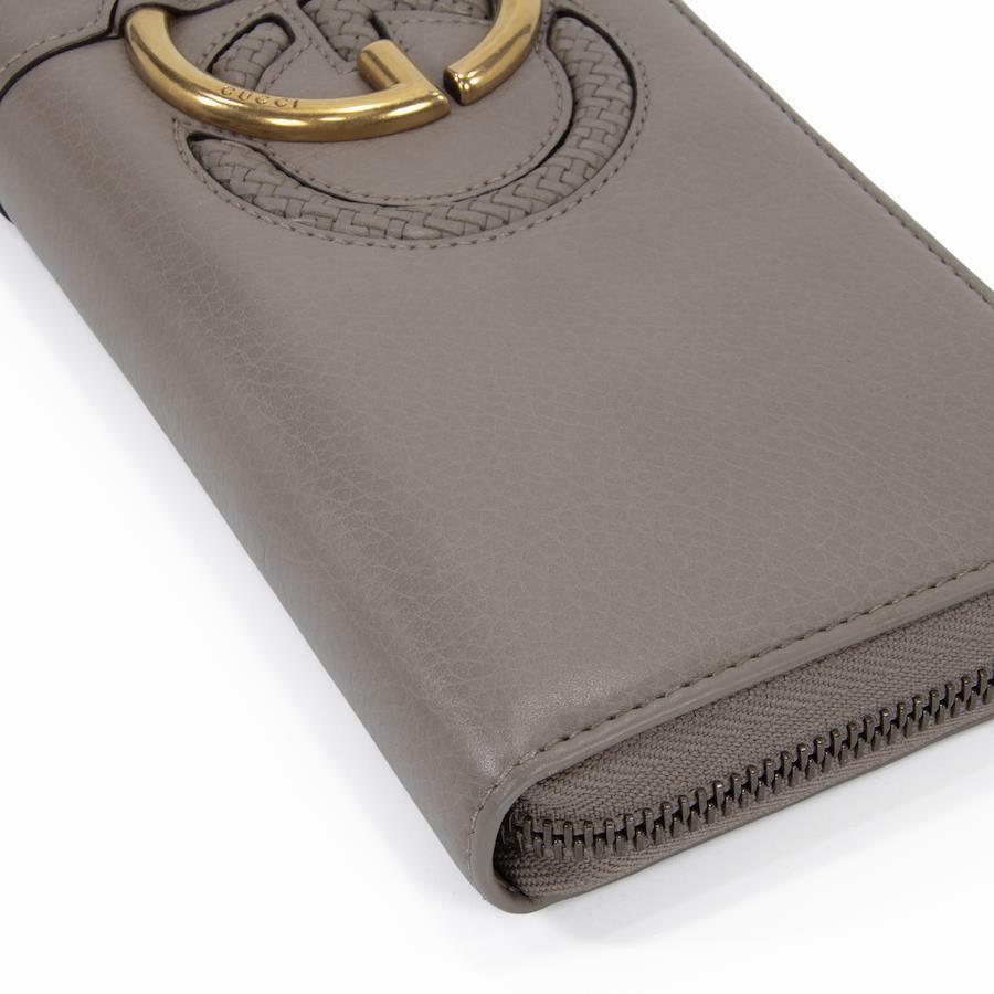 こちらは編み込みレザーの繊細な意匠が所有欲を満たしてくれる、グッチの長財布でございます。