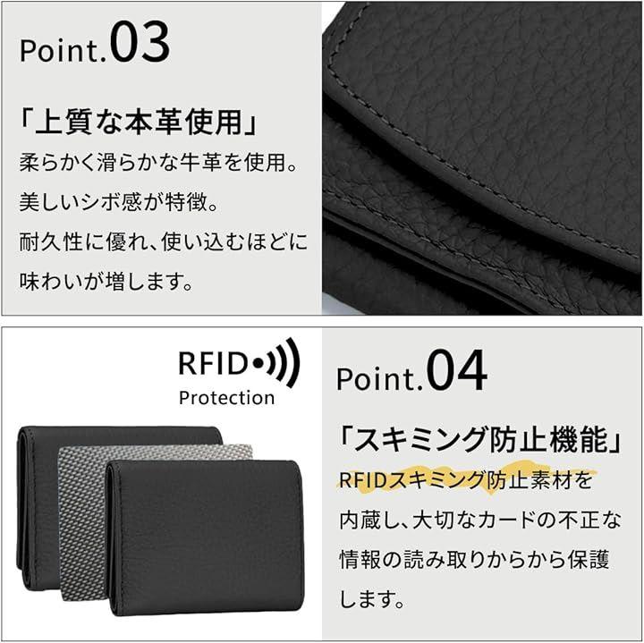 「スキミング防止機能付き」 RFIDスキミング防止素材を内蔵し、クレジットカードやICカードの磁気情報を不正な読み取りから保護。