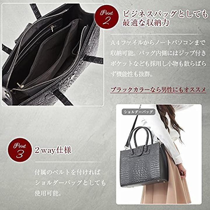 高級本革にクロコダイル型押しを施し、丁寧に熟練職人が作り上げたビジネスシーンにも似合うトートバッグです。
