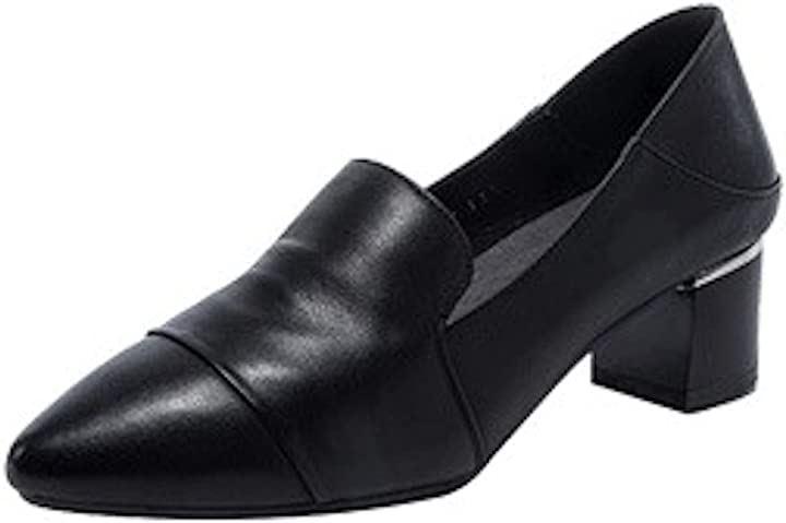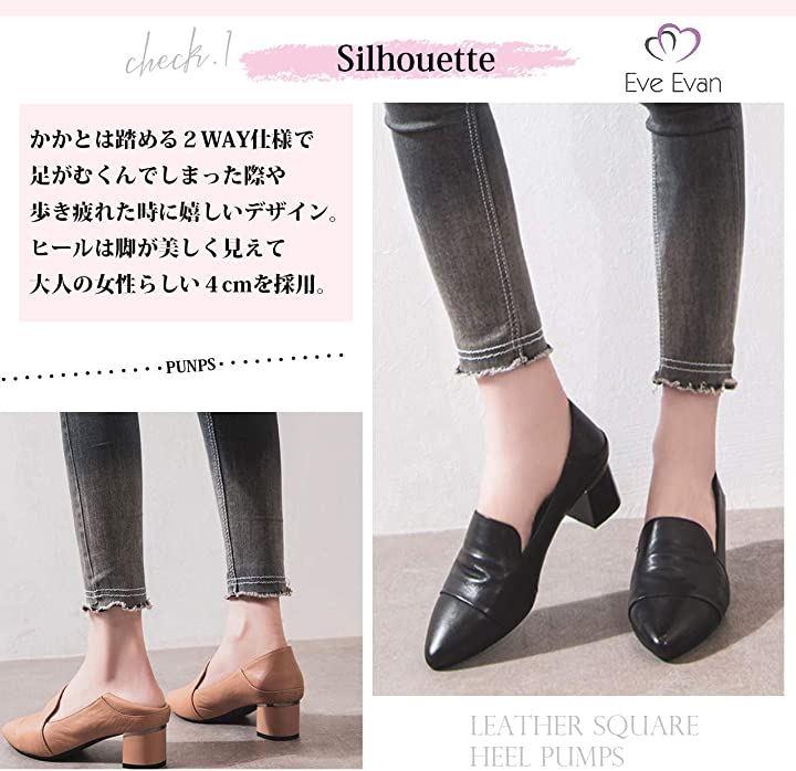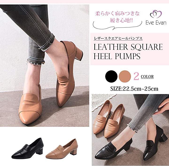 お手持ちのコーディネートに合わせやすい本革レザーのスクエアヒール・パンプスのご紹介です。