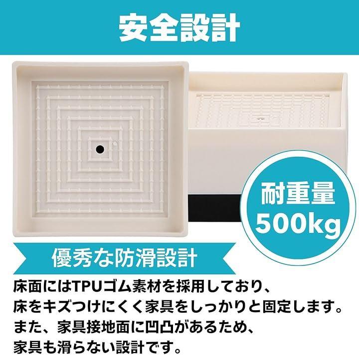 滑り止め付きで安定感があり、家具のズレや床の傷を防ぎます。