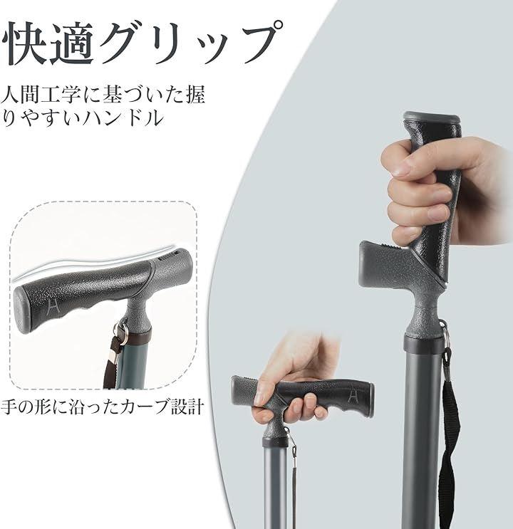 手にやさしい形状で、長時間の使用でも疲れにくく、普段の歩行補助から登山サポートまで幅広く活躍します。