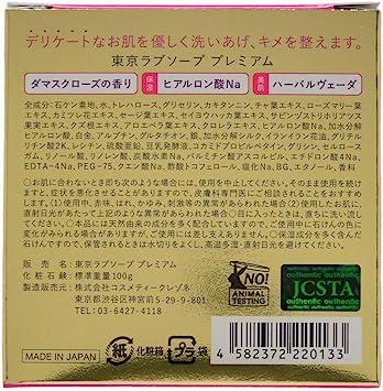 通常1-5営業日で発送:【プレミアム】保湿、美肌、美白に効果が期待できる《20種類》の成分をデリケートゾーンケアソープ「東京ラブソープ」に配合しました。【P保湿力】ヒアルロン酸Na、セリシン(加水分解シルク)に、浸透を意識した「低分子型ヒアルロン酸」を配合し、入浴後もしっとりモチモチ肌に。【P美容】植物性プラセンタと言われるバイオアンテージ(アロエベラ葉エキス、クズ根エキス、クロレラエキス)やグルタチオンなど、美肌成分をたっぷり配合したプレミアムは、海外で"美容石鹸"としても評価◎。【Pニオイ対策】シリーズ通して好評のカキタンニン・チャ葉エキスがニオイの原因をしっかり吸着し洗い流します。さらにプレミアムは、バラの女王「ダマスクローズ」と魅惑の香料「イランイラン」を調香し配合しました。ローズの優雅な香りがシャワー後も心地よく香ります。【250万個】発売から10年以上経ちシリーズ累計250万個突破。石油系合成界面活性剤・合成着色料(タール系色素)、鉱物油フリーでデリケートゾーンを優しくケアします。
