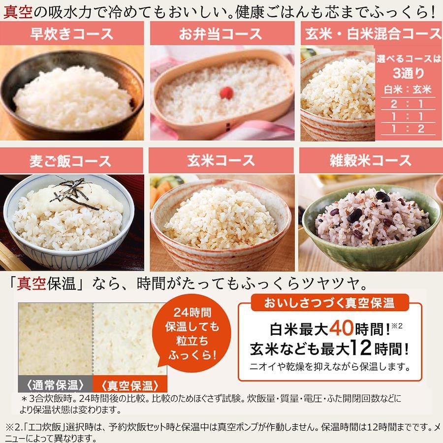 3営業日以内に発送≪新品未開封品≫:【大火力1420W】大火力と火加減の「炎匠炊き」 強火で一気に炊き上げることで、一粒一粒お米の芯まで熱が伝わり、ふっくら粒立ちの良いごはんに仕上げる。 また、炊きから蒸らしまで火力を細かく調節することで、ごはんの甘みが増す温度帯をしっかりとり、お米が本来持っている旨みを引き出す。