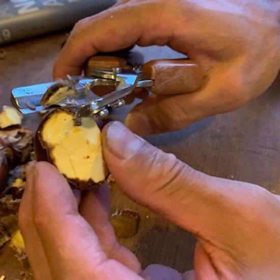 ギザ刃(抑え刃)を鬼皮にしっかりと食い込ませ、栗を固定します。