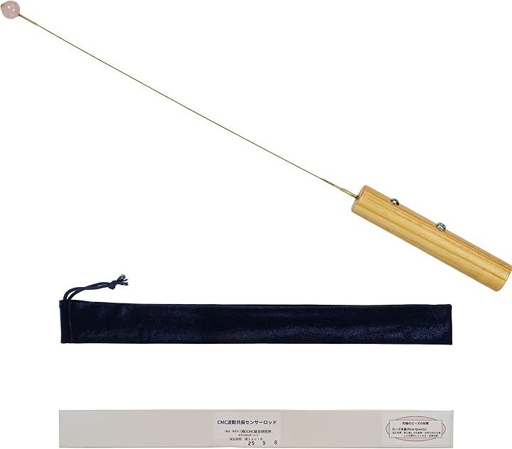 「CMC共振センサーの仕様&注意事項」サイズ:全長約38cm *重量:約20g *柄の部分:ケヤキ材など(ニス塗り仕上げ) *共振部分:真鍮、またはステンレス製 *先端:パワーストーン「水晶/アメジスト/ローズクォーツ」の3種からお選びいただけます。