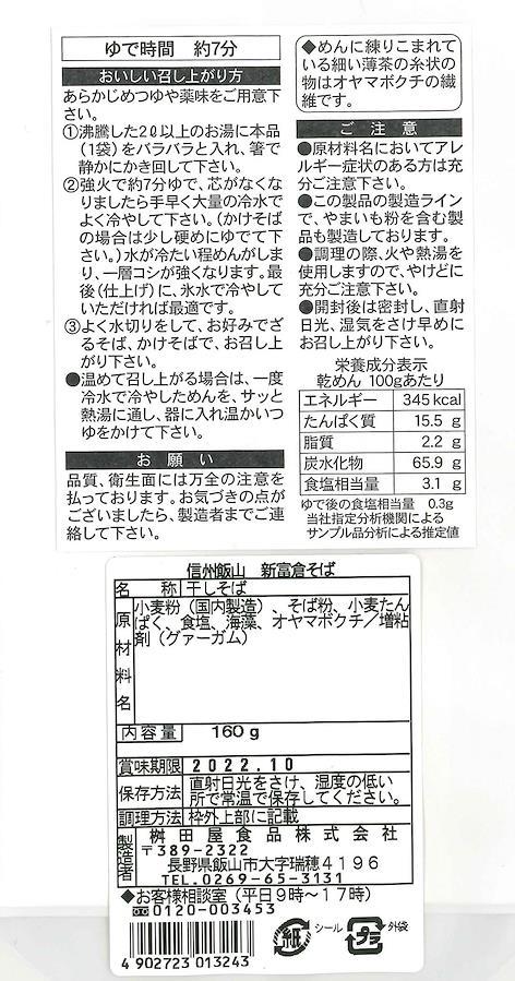 小麦粉(国内製造)、そば粉、小麦たんぱく、食塩、海藻、オヤマボクチ/増粘剤(グァーガム)